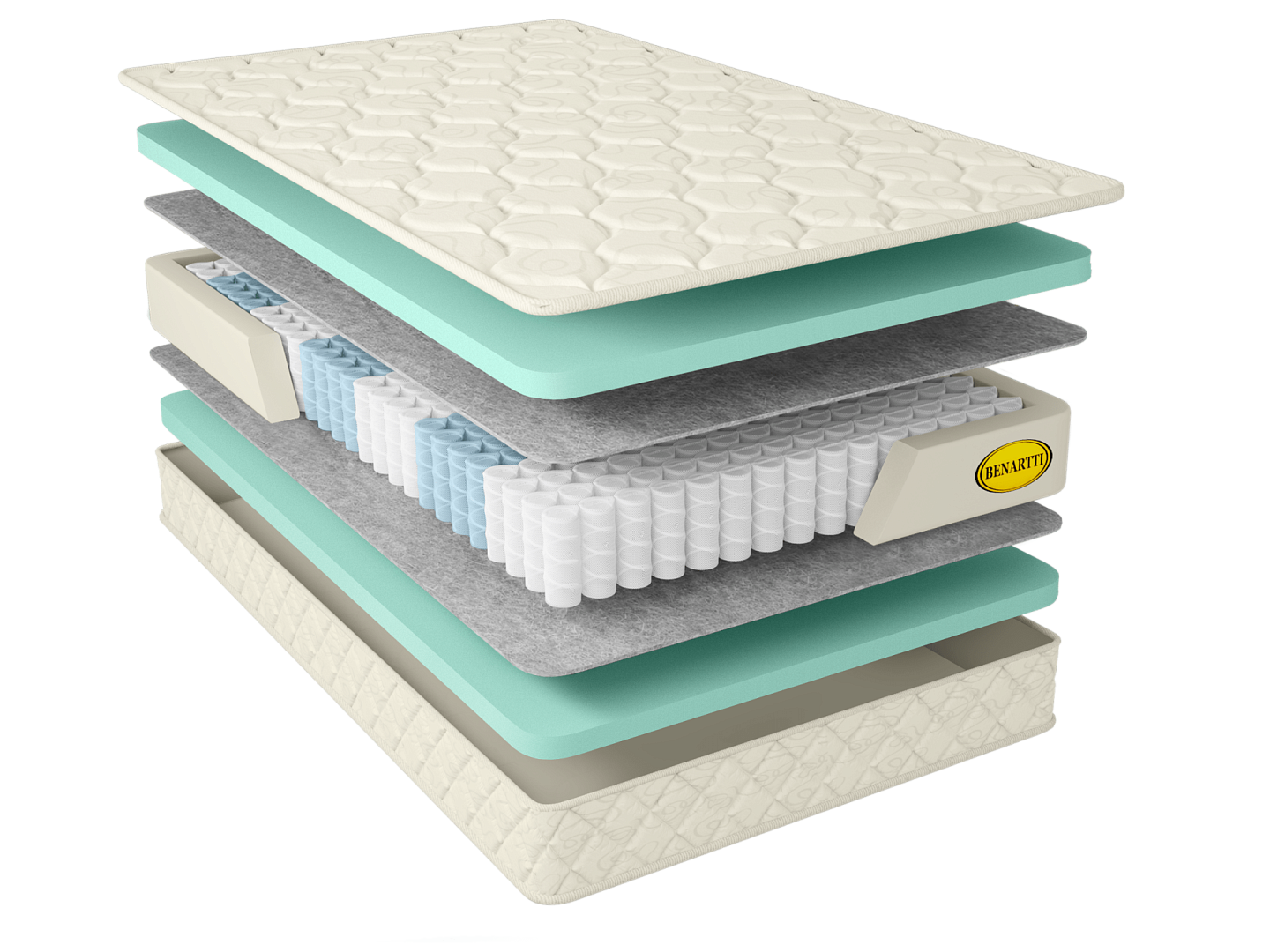 Для дополнительной защиты пружинного блока добавлен изоляционный слой из войлока, разделяющий наполнители матраса и пружины. С каждой стороны расположен слой искусственного латекса высотой 4 см, обладающий анатомическим эффектом и износостойкими свойствами. Чехол матраса, выполнен из хлопкового жаккарда, простеганного на экологически чистом материале Hollcon. Ткань обработана специальной антибактериальной пропиткой SANITIZED (Швеция). Пропитка обеспечивает полное уничтожение плесневых грибков, не дает развиваться микроорганизмам, пылевым клещам и микробам.