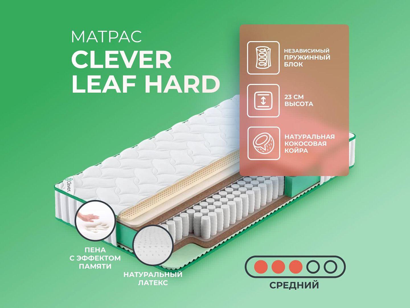 Фабрика Clever получила заслуженную репутацию, благодаря применению новых технологий и безупречному соблюдению стандартов качества. Clever Leaf Hard — образец продукта с лучшими характеристиками и доступной ценой, матрас создан из дышащих тканей, с эффектом вентиляции.